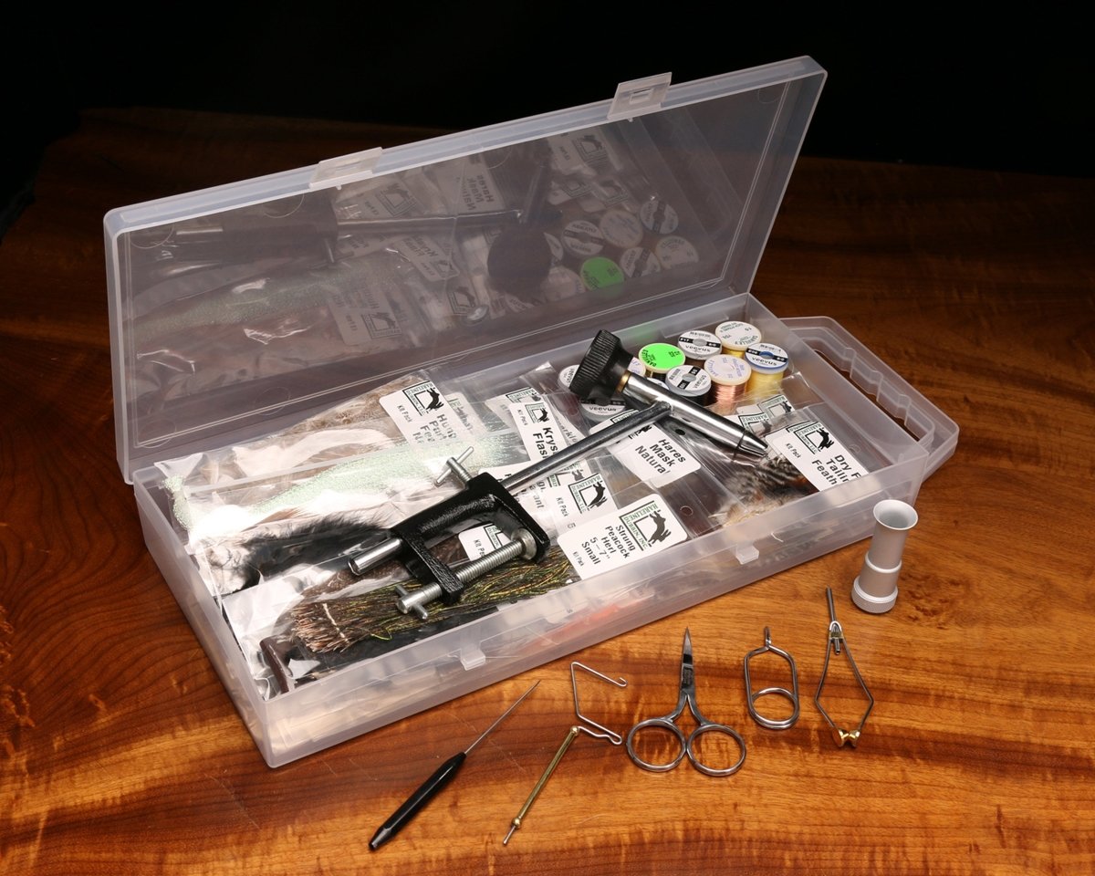 Includes Indian tools and vise kit with complete Hareline Fly Tying Material Kit (48 different materials make this fly tying kit the ultimate kit for a beginner tier. All premium materials, hooks and veevus threads. Includes a full color 60 page 20 fly pattern book with step by step instructions.)