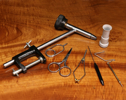 Hareline Fly Tying Material Kit with Economy Tools & Vise