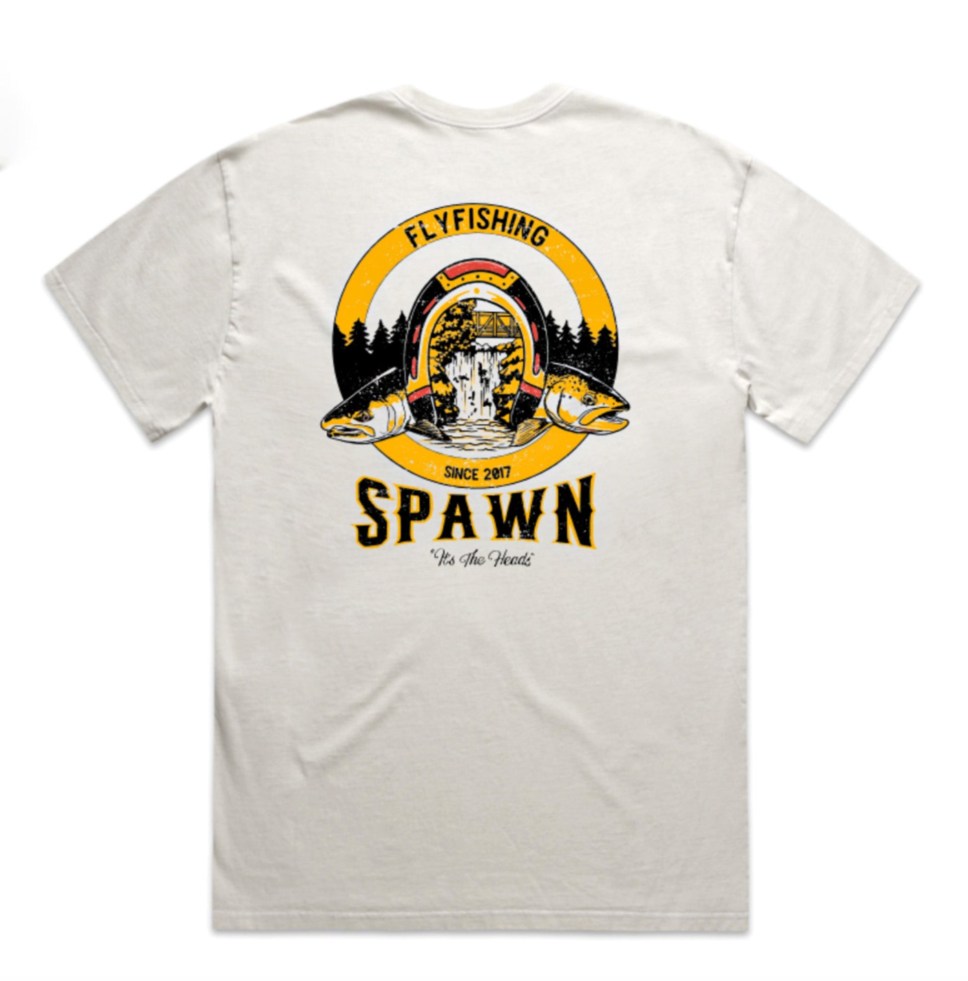 Embrace the nostalgia with a vintage feel and the distinctive "faded bone" color of this T-shirt. It's more than just apparel; it's a connection to our roots and a celebration of local artistry. Don't miss the chance to own a piece of Spawn Fly Fish history – order your shirt today and wear a piece of the Pacific Northwest wherever you go.